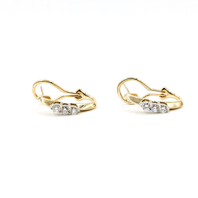 Earrings 3-Stone 0.42ctw Round Diamonds 14ky 20.5mm x 2.88mm 4.4g 225110046