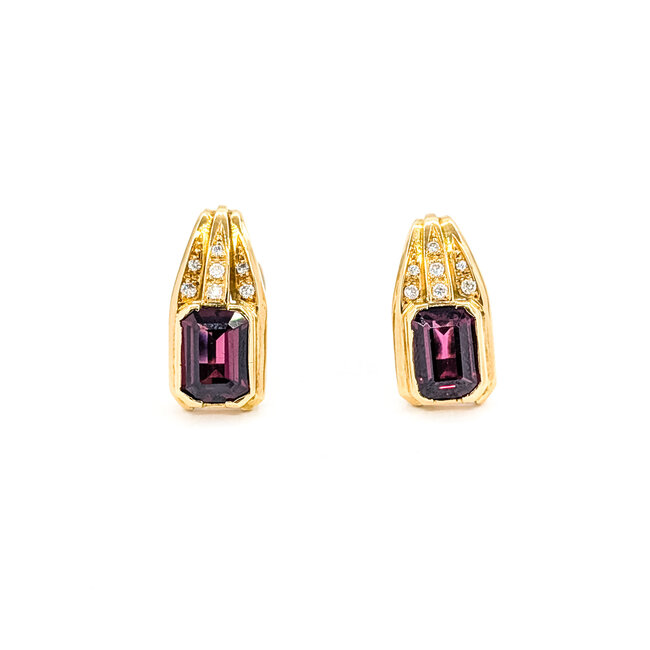 Earrings Clip-on 0.26ctw Round Diamonds 6ctw Red/Purple Garnet 18ky .75x.4" 7.86g 126020034