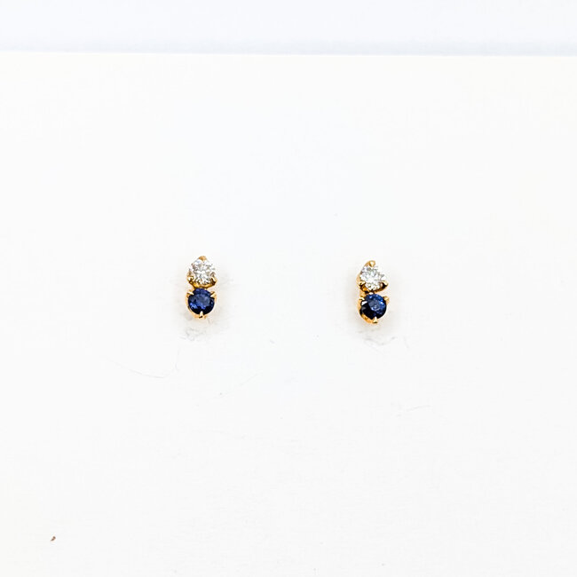 Earrings Stud 2-Stone 0.2ctw Round Diamonds 0.2ctw Blue Sapphire 18ky 7.5x3.5mm 1.71g 126010014