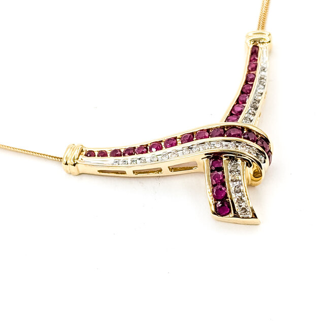 Necklace Cross Over 0.16ctw Round Diamonds 1ctw Ruby 14ky 30mm x 42.8mm 17" 7.9g 225110050