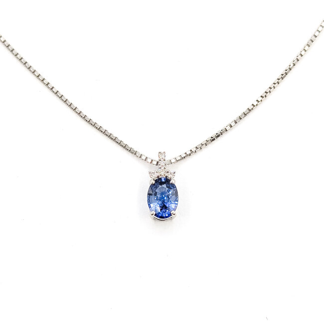 Necklace Drop 0.05ctw Round Diamonds 1.07ct Blue Sapphire 850pt 15-17" 5.26g 126010023