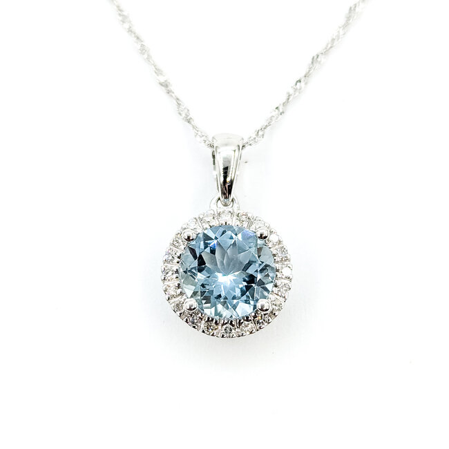 Pendant 0.08ctw Diamonds 1.3ctw Aquamarine 14kw 125110108