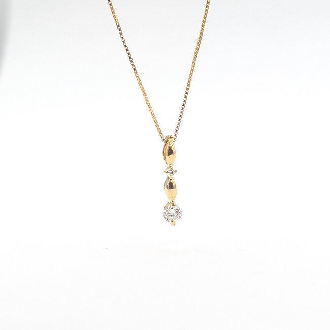 Pendant Bar W/Chain 0.1ctw Round Diamonds 18ky 14x3mm 14-16" 1.46g 126020033