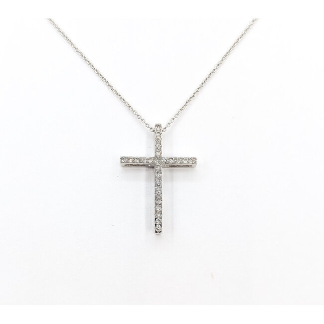 Pendant Cross .18ctw Round Diamonds 18kw .9x.5" 14-16" 2.83g 126030073