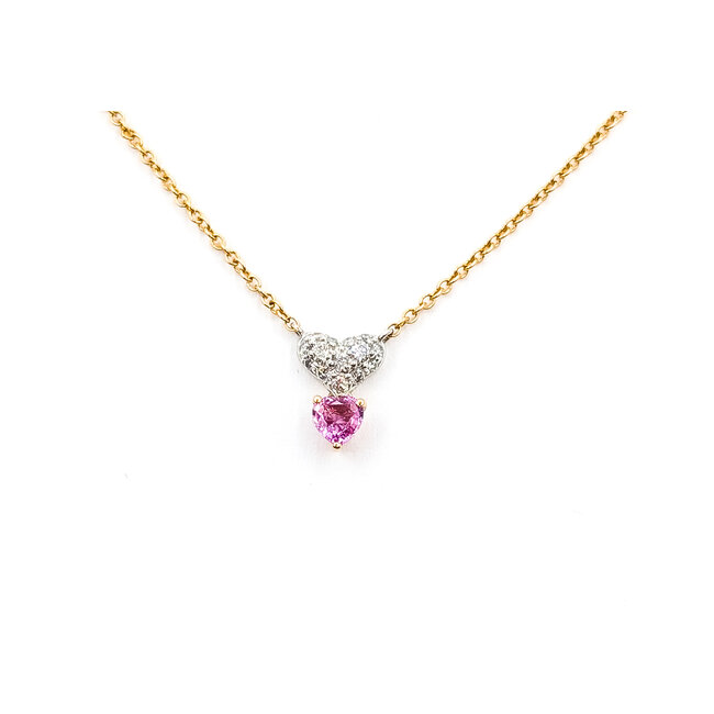 Pendant Double Heart .17ctw Round Diamonds .31ct Pink Sapphire 18kr 10x7mm 15.5" 2.71g 126030074