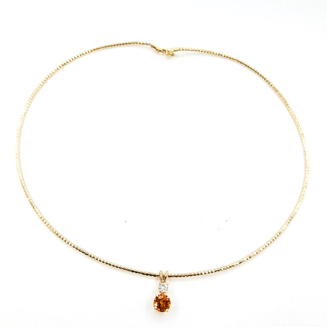 Pendant Drop 0.22ctw Round Diamonds 1.2ct Spessartine Garnet 14ky 17.5mm x 6mm 16" 8.6g 225110042