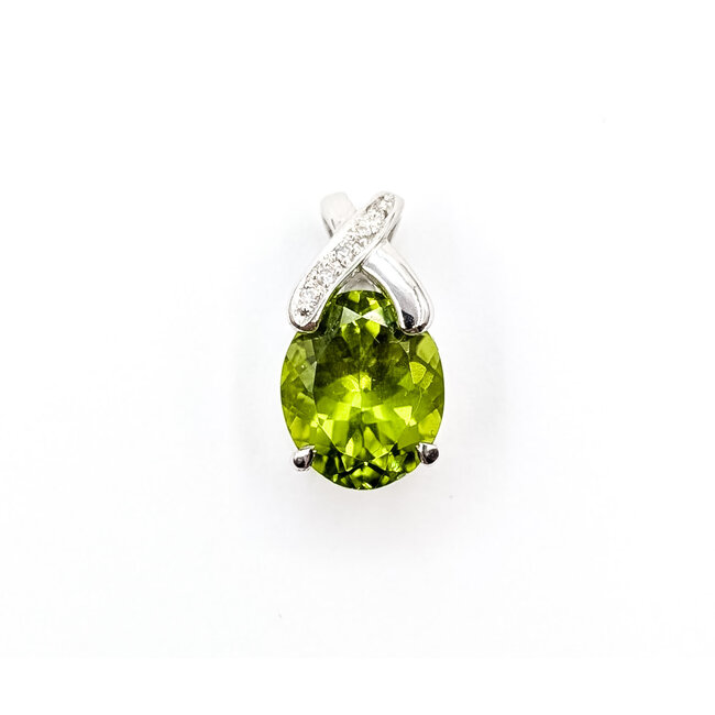 Pendant Drop .03ctw Round Diamonds 4.22ct Green Peridot 18kw .55x.35" 2.72g 126030057