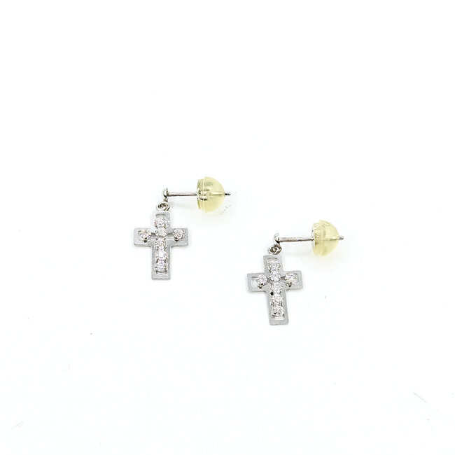 Earrings Stud Cross .10ctw Round Diamonds 14kw .55x.3" .74g 125120104