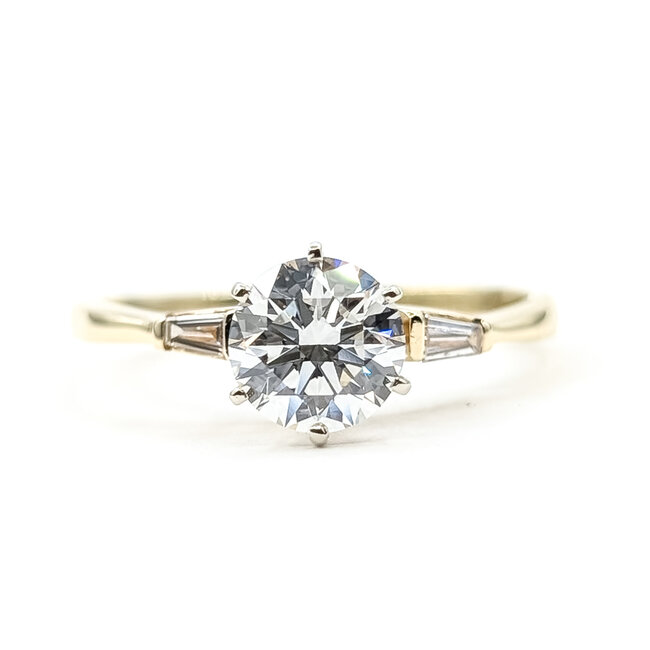 Ring 1.08ct Round Lab Grown Diamond IGI Report: 756535161 VVS2 E .08ctw Baguette Diamonds 14ky Sz7 123120104