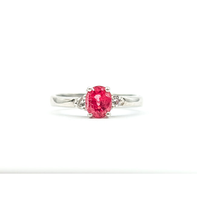 Ring 3-Stone 0.08ctw Round Diamonds GIA Report: 5231381725 1.01ct Red/Orange Spinel 18kw 2.2mm Sz6.5 3.51g 226020059