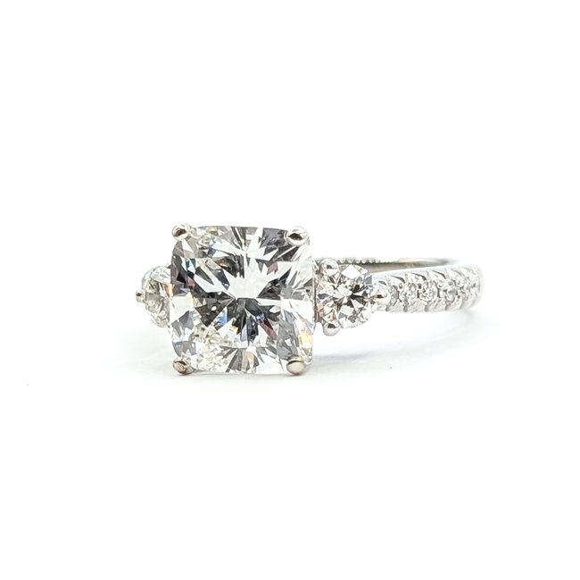 Ring 3-Stone Engagement 3ct Cushion Lab Grown Diamond IGI: 752514910 .75ctw Diamonds 18kw 2.9mm Sz6.25 4.66g 125090013