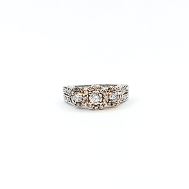 Ring 3-Stone Halo Milgrain & Wheat 1.00ctw Round Diamonds 14ktt 4.75mm Sz5.5 5.27g 125120002
