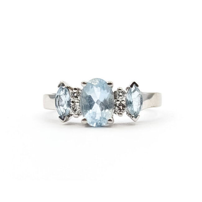Ring 7-Stone .05ctw Round Diamonds 1.00ctw Sky Blue Aquamarine 14kw 2.3mm Sz7 2.73g 126030035