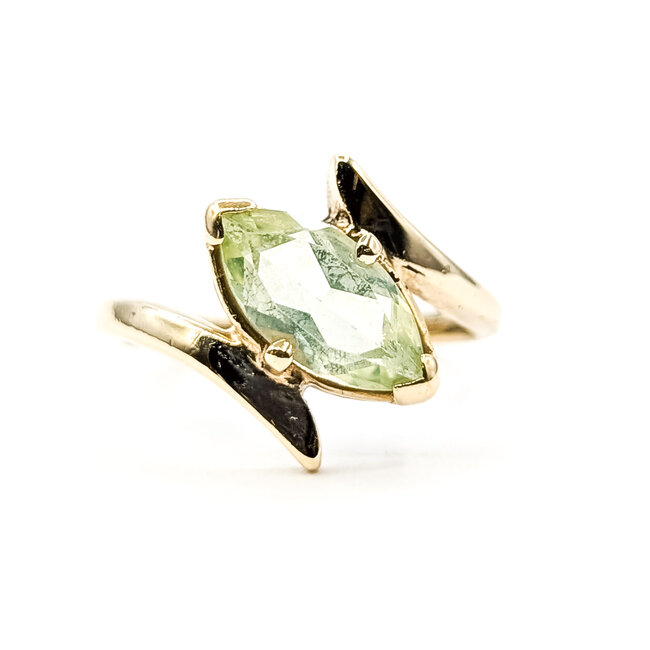Ring Bypass 1ct Yellowish Green Uranium Glass 14ky 2mm Sz7.25 3.46g 126030039