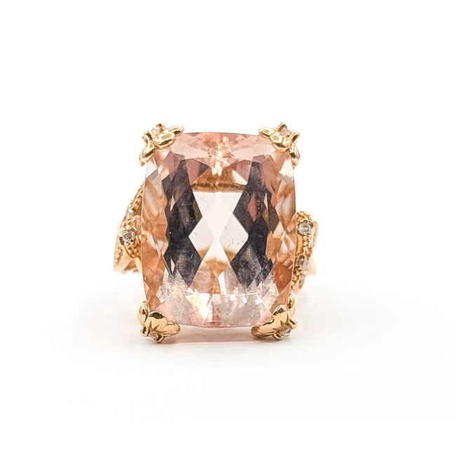 Ring Cocktail Twist 0.14ctw Round Diamonds 19.5ct Pink Morganite 14kr 3mm Sz7.75 8.9g 226020048