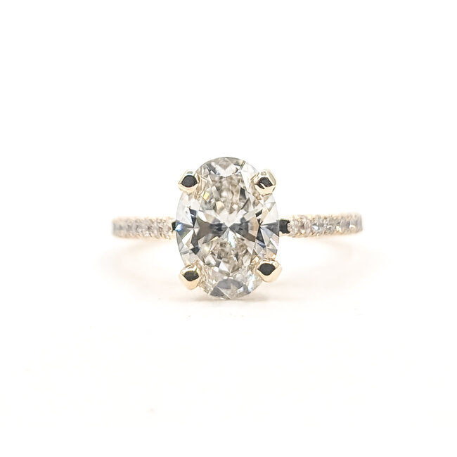 Ring Engagement Cathedral 1.54ct Oval Lab Grown Diamond IGI: LG757523546 0.2ctw Diamonds 14ky 1.8mm Sz4 1.7g 126038023