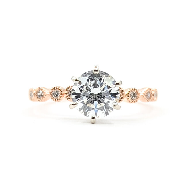 Ring Engagement Milgrain 1.1ct Round Lab Grown Diamond IGI Report: 696551884 VVS2 D .14ctw Diamonds 14kr 2.2mm Sz6.5 1.91g 126038031