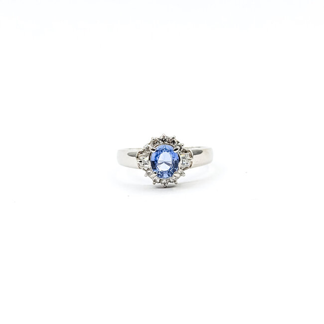 Ring Halo 0.27ctw Round & Baguette Diamonds 0.8ct Pastel Blue Sapphire Pt850 Sz5.75 4.54g 126010033