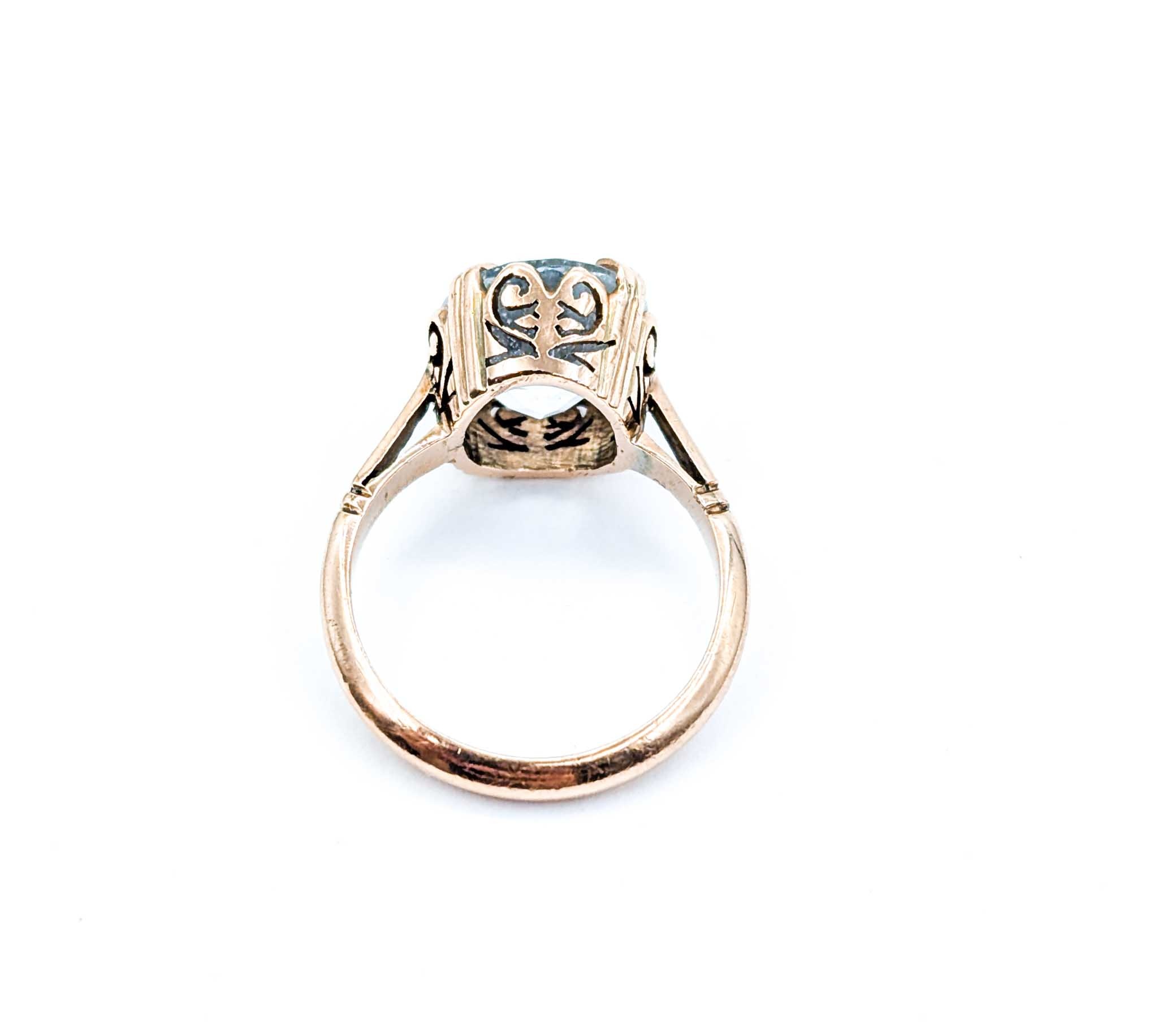 Ring Mid-Century Heart Filigree 12.2x10mm Aquamarine 9ky Sz6 3.92g 125020007