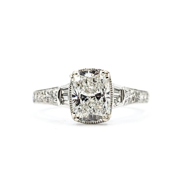 Ring Milgrain 1.57ct Cushion IGI : LG665422772 .29ctw Round & Baguette Diamonds 14kw 9x7.5mm Sz6.5 2.9g 125060023