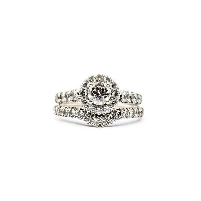 Ring Wedding Set Halo .75ct Round Diamonds 1.40ctw Diamonds 14kw Sz12 8.45g 226012012