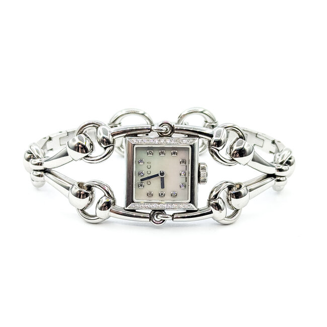 Watch Gucci 116.5 Signoria MOP Diamond Dial 19mm Stainless Steel 7.25" Box 125126014